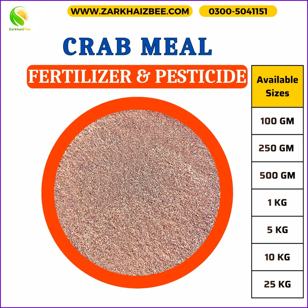 Crab Meal ek premium organic fertilizer hai jo sirf growth ko boost nahi karta balkay natural pesticide ke tor par bhi kaam karta hai. Ye crushed crab shells se banta hai aur calcium, nitrogen aur chitin se bharpur hota hai. Chitin plant immunity ko strong karta hai aur soil me un pests ki population ko kam karta hai jo roots ko damage karte hain.