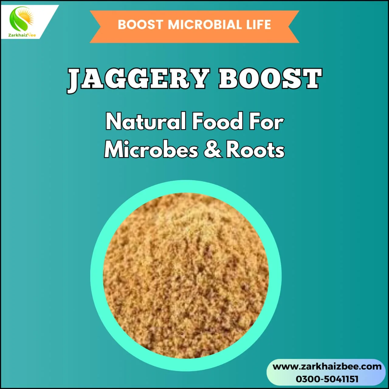 Jaggery Boost is a 100% natural organic fertilizer made from processed jaggery that works as a powerful soil microbial activator. It feeds beneficial microorganisms in the soil, improving nutrient availability and enhancing overall plant growth naturally.